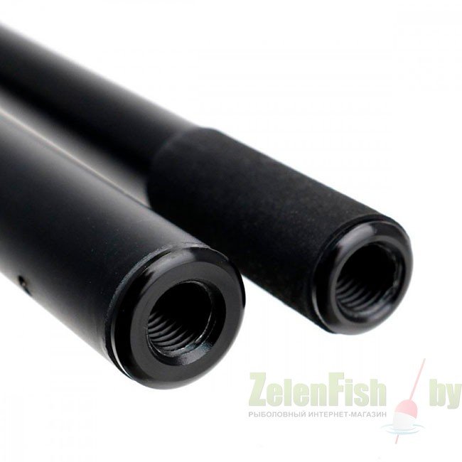Прочная двухсекционная ручка из японского карбона HM2. Каждую секцию можно использовать отдельно, так как каждая секция имеет торцевую резьбу под голову подсака. Рукоять покрыта нескользящим материалом в местах хвата.