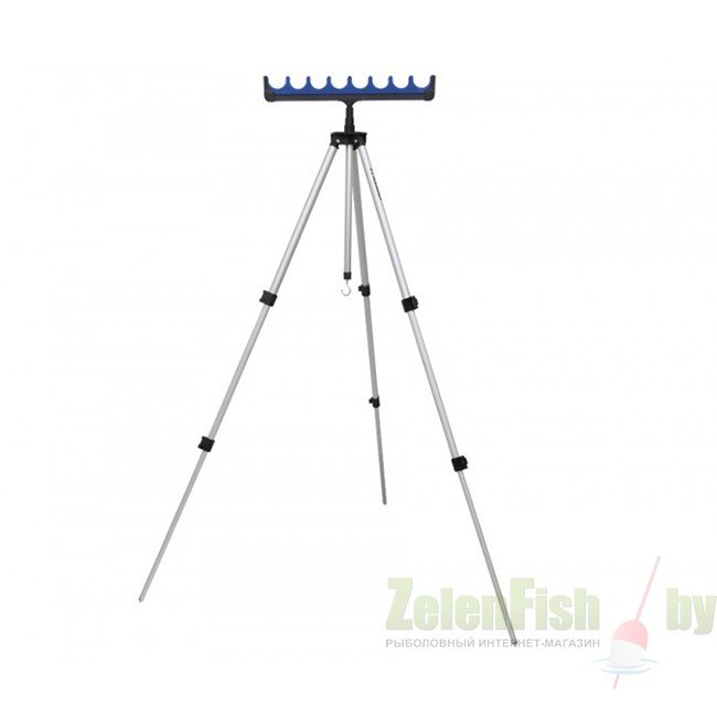 Изготовлена из алюминия и оснащена гребенкой из мягкого пористого материала, предохраняющего бланки удилищ от царапин и соскальзывания при поклевке. Она дает возможность установки нескольких удилищ одновременно. В основном треноги такого типа предназначены для хранения запасных удилищ на рыбалке, но они также с успехом применяются при ловле на фидер и матч. Вес: 750 г. Транспортировочная длина: 57 см. Общая длина: 57-110 см.