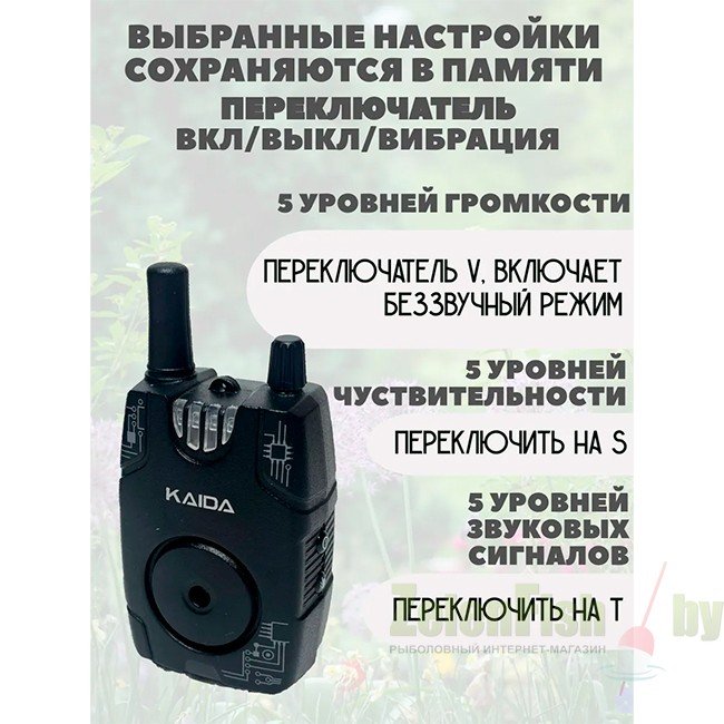Ударопрочный материал корпуса из ABS. Высокая чувствительность, позволяющая фиксировать даже самые осторожные поклевки 5 уровней чувствительности. Регулируемая громкость и тон звука 5 уровней громкости, 8 уровней тональности. Световая и звуковая сигнализация для оповещения в любое время суток, 7 цветов на выбор. Дальность работы пейджера до 200 м. Сигнализаторы и аксессуары упакованы в удобный кейс с отделениями для каждого устройства. Кейс обеспечивает защиту оборудования от повреждений и удобство переноски. Подходит для различных видов рыбалки, включая карпфишинг и фидер. Сигнализатор для рыбалки подходит для ловли на несколько удилищ одновременно.