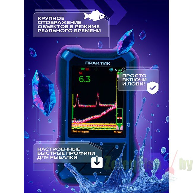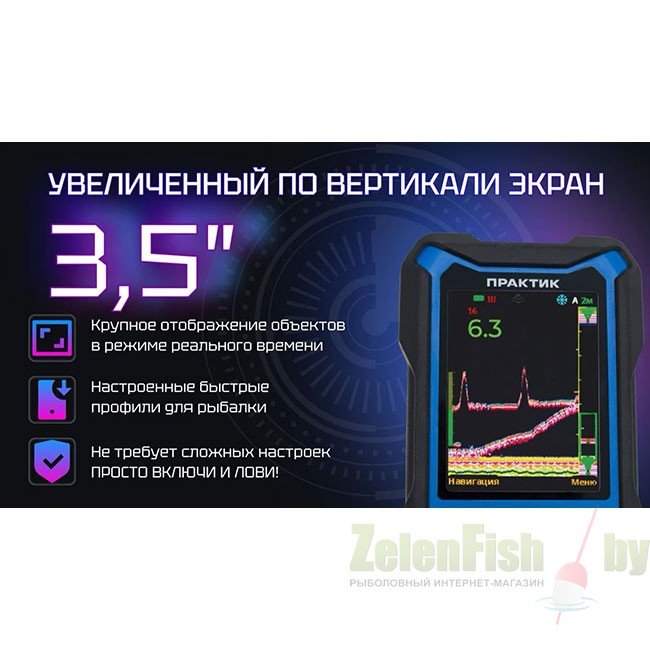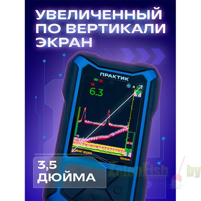 Предназначен для исследования толщи воды, обнаружения перспективных мест для рыбалки, поиска и наблюдения за рыбой и приманкой. Увеличенный по вертикали IPS экран, диагональ 3,5", разрешение 320х240 пикс.