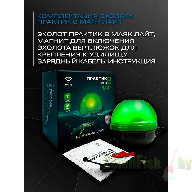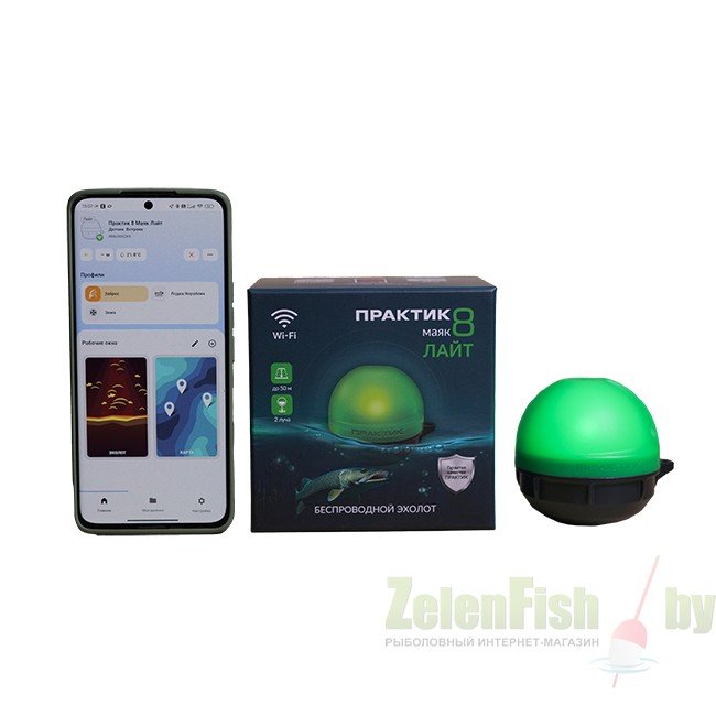 Это беспроводной эхолот, который работает совместно с мобильным приложением "Мой Практик". Возможность применения для рыбалки в любое время года.