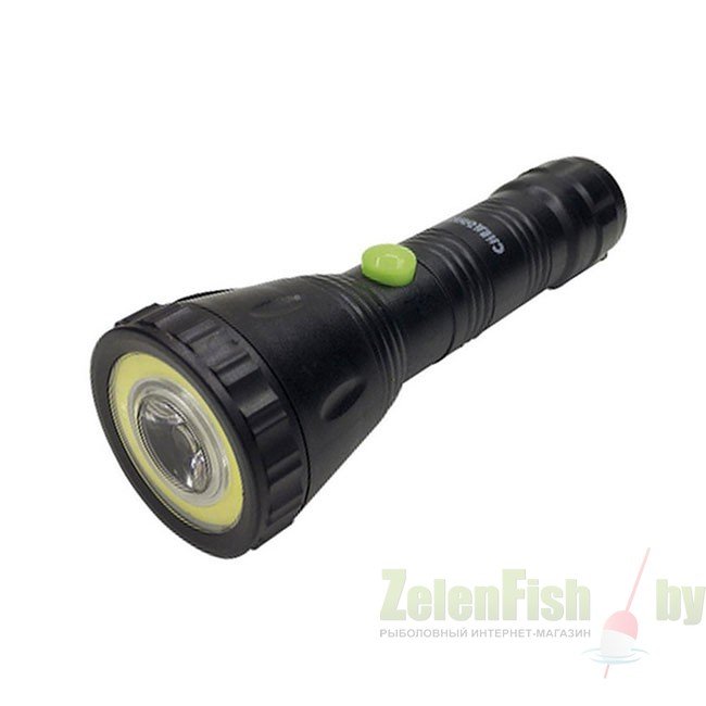 Небольшой и легкий фонарь, объединяющий в отражателе два вида светодиодов – центральный LED и круговой СОВ мощностью по 2 Вт. Стильный прочный корпус из пластика, два режима работы, питание от трех батарей типа ААА.