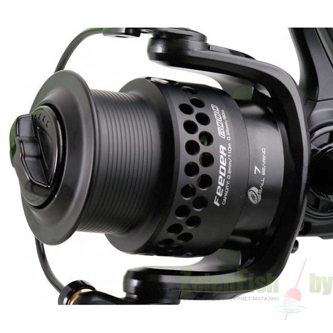 Катушка, специально разработанная для использования на фидерной снасти. Переднефрикционная компоновка обеспечивает относительную компактность и небольшой вес при вместительной шпуле и внушительных тяговых характеристиках. Корпус и ротор выполнены из прочного пластика, ручка – из алюминия. Алюминиевая шпуля геометрии Long Cast обладает большой площадью намотки, что положительно сказывается на дальности заброса.