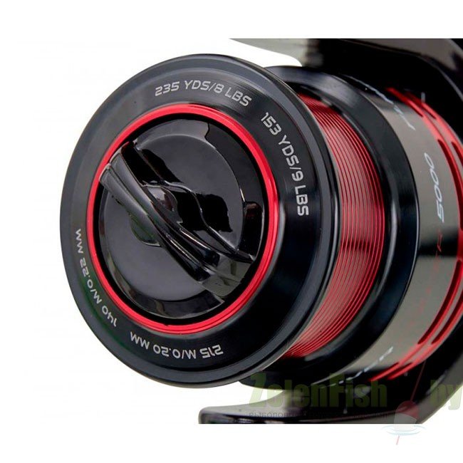 Усовершенствованный кулисный механизм укладывает леску исключительно качественно, а стойкий к протиранию и коррозии ролик лесоукладывателя с системой Anti-Twist предотвращает ее перекручивание. Фрикцион обладает точной плавной регулировкой и отличается стабильной работой. Фрезерованная алюминиевая ручка ввинчивается напрямую в главную пару, что предотвращает любые люфты. Рукоятка обрезинена, ее плоская форма обеспечивает надежный и уверенный хват. Особую плавность хода обеспечивают установленные в механизме 6+1 высококачественных подшипников из нержавеющей стали.