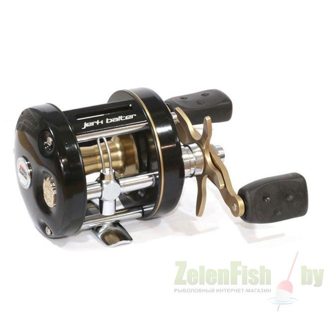 Катушки линейки Ambassadeur Jerkbaiter – это классические мультипликаторы «бочонки», их корпус выполнен из металла. Механизм Duragear включает в себя детали, которые сделаны из латуни. Такой механизм наделен высокой мощностью для борьбы с добычей крупного размера и ловли на крупные приманки. Лесоукладчик выполнен с так называемой системой бесконечного винта. Как и корпус, рукоять выполнена из металла. Она имеет изогнутый эргономичный профиль, оснащена двумя прорезиненными кнобами. В моделях серии Ambassadeur Jerkbaiter применяется фрикционный тормоз Carbon Matrix. У модификации 5601 JB он рассчитан на максимальную нагрузку до 7 кг. Вес данной катушки равен 324 гр. Показатель передаточного числа составляет 5,3:1.