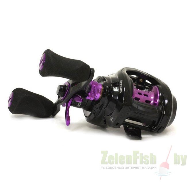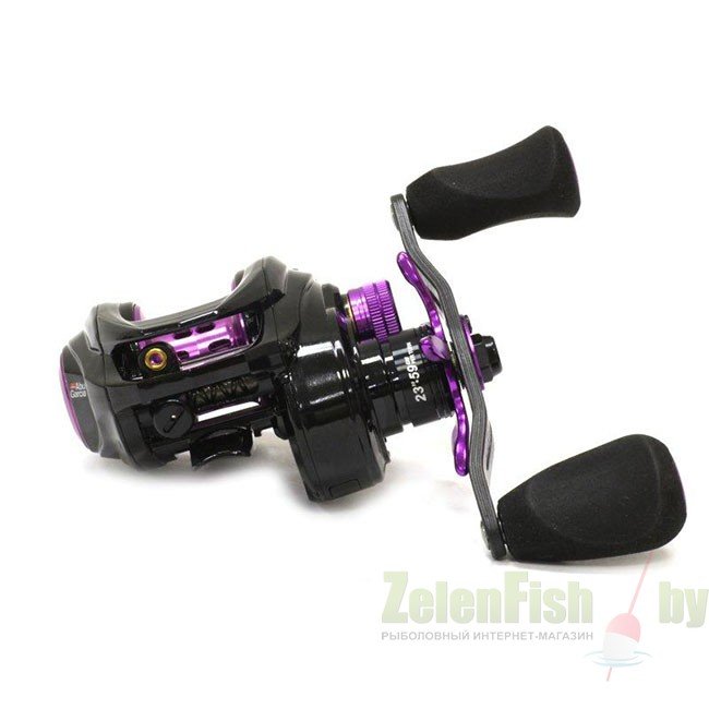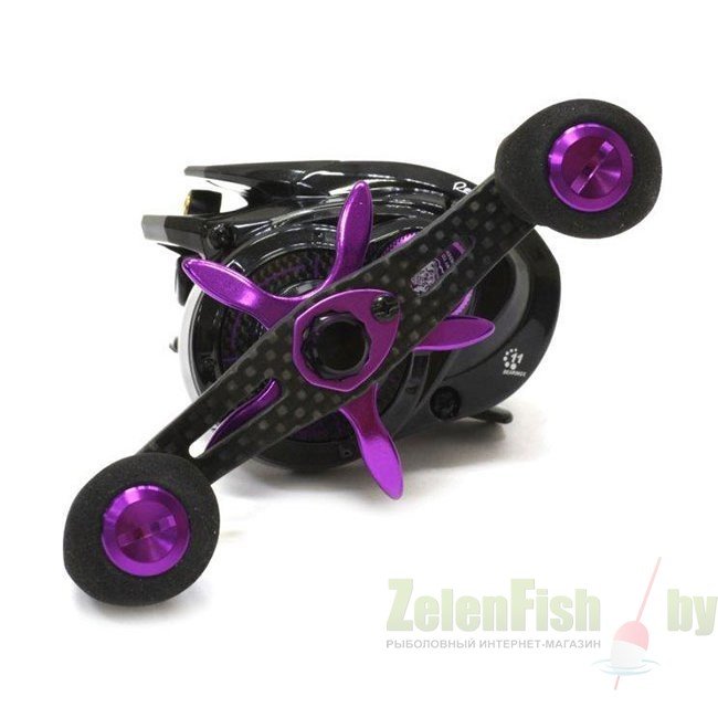 Представленные мультипликаторы выполнены в черном цвете с фиолетовыми элементами. Это низкопрофильные "мыльницы" от экспертов бренда Абу Гарсия. Рама корпуса произведена из не боящегося коррозии сплава X2-Craftic ™, для изготовления боковых панелей взят карбон C6. Это дало прочность при весе до 200 гр. Внутри скрыт механизм с шестерней D2 Gear Design ™, что отличается надежной работой. Для того, чтобы добиться максимальной плавности хода, установлено 11 (10 шариковых из нержавейки + 1 роликовый) подшипников. Система укладки лески у Revo4 EXD с бесконечным винтом, что способствует плотной намотке. Шпуля сверхлегкая - Infini II ™. Есть и запасная такая деталь из сплава алюминия. Фрикционная система типа Carbon Matrix ™. Для возможности более точных настроек есть также магнитный тормоз.