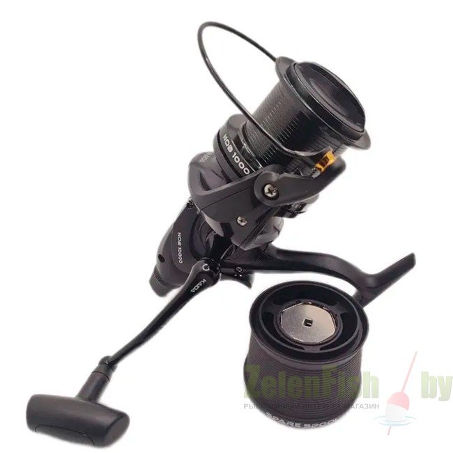Карповая катушка с размером шпули 10000 и системой байтранер для мгновенной блокировки шпули. Эта инновационная система позволяет рыболову не беспокоиться о разрывах снасти при поклевке рыбы, а также позволяет сохранить удилище при поклевке крупных экземпляров. Система байтранер позволяет равномерно стравливать леску с катушки. Данная катушка разработана специально для рыбалки на трофейную рыбу на дальних растояниях с тяжеловесными оснастками. Шпуля изготовлена из металла так же в комплекте идет дополнительная пластиковая шпуля. Укладка лески или плетенки производится ровно и качественно, что поспособствует дальнему забросу.