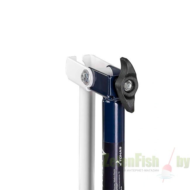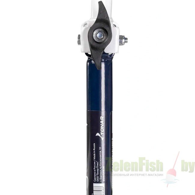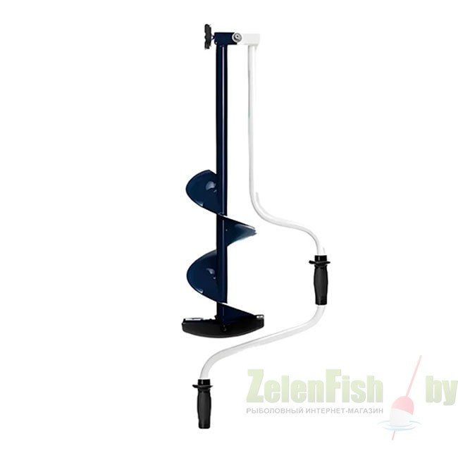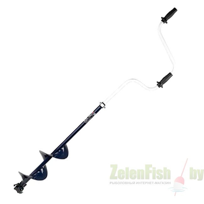 Верхняя рукоятка ледобура смещена относительно оси шнека на 130 мм, а нижняя на 150 мм. Такое расположение рукояток позволяет вращать ледобур одновременно двумя руками, тем самым, не прикладывая особых усилий, увеличивая скорость бурения лунок во льду. Запатентованная конструкция замка не дает люфта даже при частом использовании.