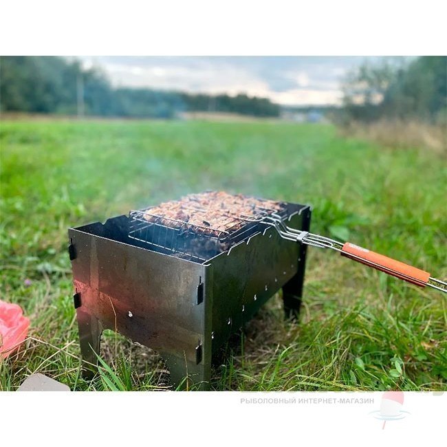 Незаменимый предмет для любителей комфортного отдыха на природе, предназначен для приготовления шашлыка из мяса, рыбы, овощей на углях. Устойчивая конструкция. Прочная сталь толщиной 2 мм сохраняет геометрию мангала при большом количестве протопок. Отлично держит тепло. Простота конструкции позволяет осуществлять быструю сборку и разборку мангала. В комплект входит удобная сумка на молнии для транспортировки мангала. Упаковка: картонная коробка.