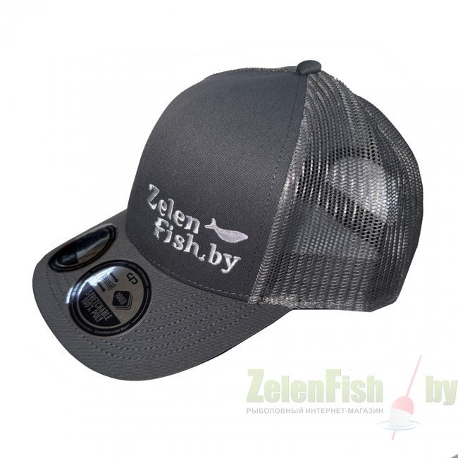 Фирменная бейсболка от ZelenFish с регулировкой размера. Размер универсальный. Цвет темно-серый. Логотип выполнен вышивкой.