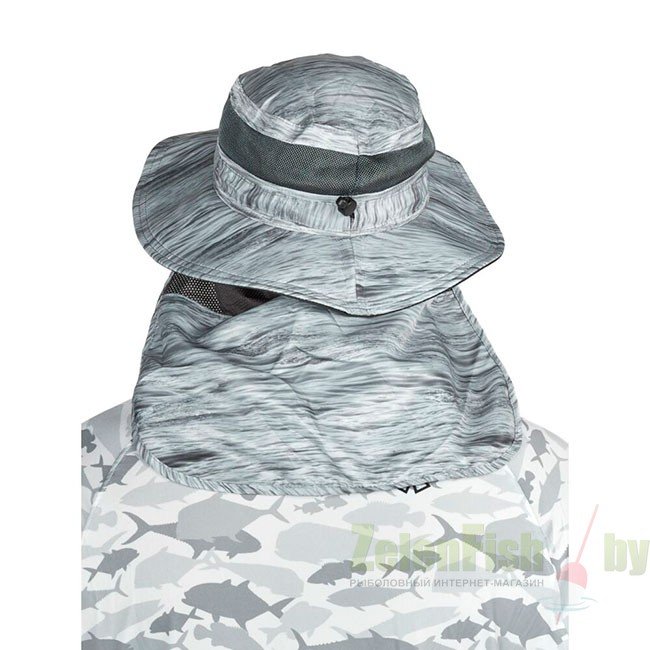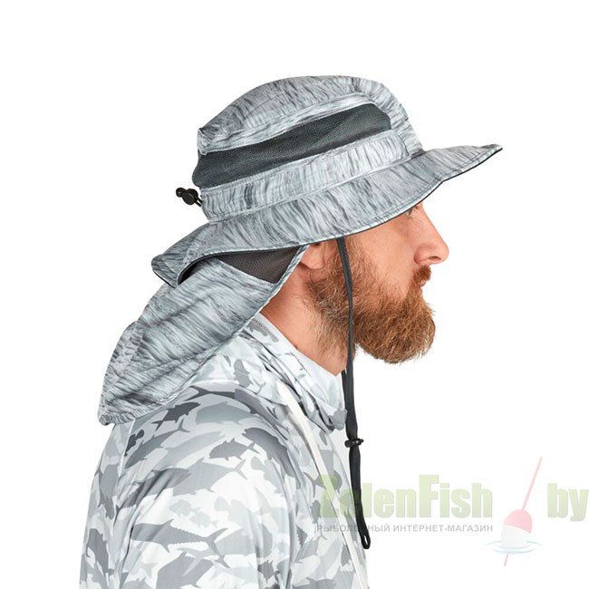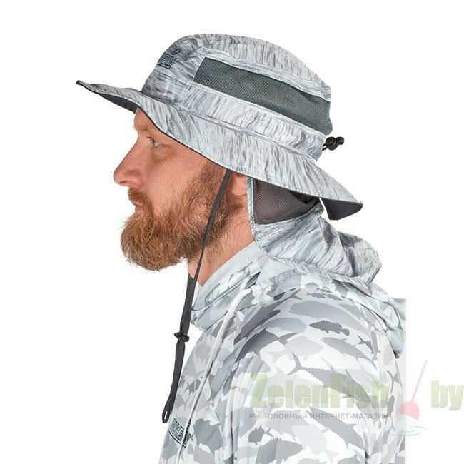 Материал быстро высыхает, обеспечивая прохладу и комфорт в жаркую погоду. Материал имеет высокий коэффициент защиты от ультрафиолетового излучения (UPF-50), что позволяет продолжительное время находиться под прямыми лучами солнца. Шляпа имеет светлую окраску, благодаря чему поглощает минимальное количество солнечного света, что ещё больше увеличит комфорт Вашей рыбалки.