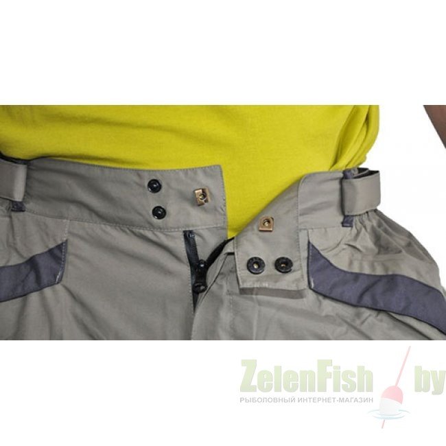 Полукомбинезон: два задних кармана, фиксатор, стягивающий талию. Усиленный материал в области колен и седалище. Есть один дополнительный карман. Фиксатор, стягивающий низ колен, водонепроницаемая застежка-молния.