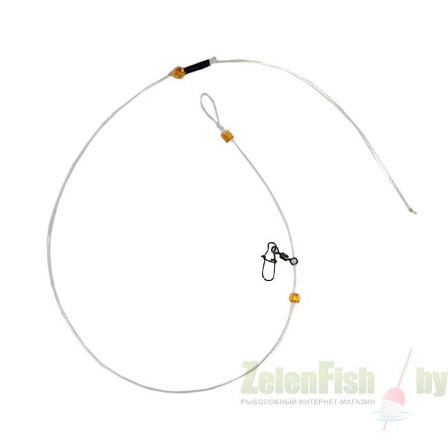 Изготовлен из качественной монофильной лески. Оснащен застежкой с вертлюгом и двумя бусинами. Оснастка для фидера инлайн, является самой гуманной и безопасной, недаром именно она, разрешена на спортивных соревнованиях по фидерной ловле. Все потому, что при данном монтаже, кормушка свободно перемещается по основной леске и при обрыве, рыба уйдет с крючком во рту, оставив кормушку на дне.