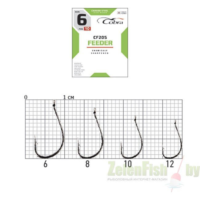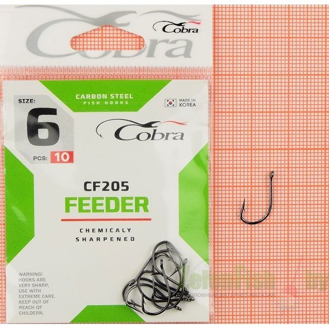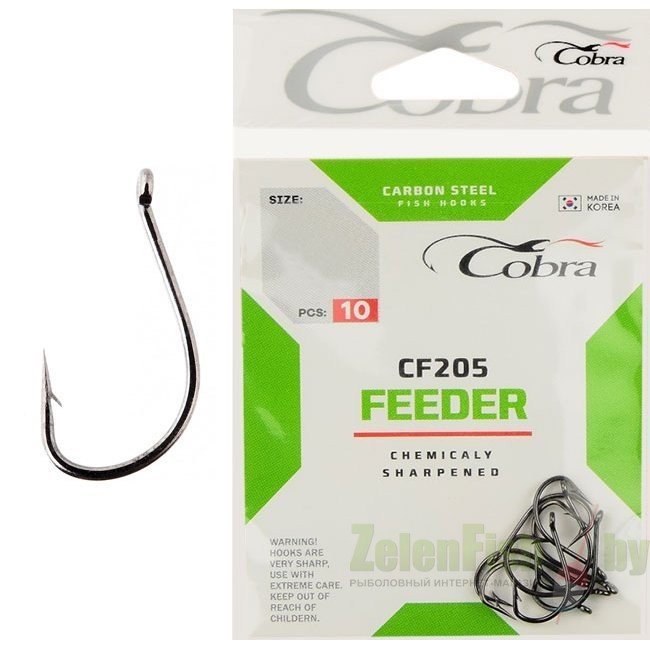 Бренд Cobra представляет серию фидерных крючков, специально разработанных ведущими мировыми спортсменами, для активной ловли рыбы на фидер. Крючки выполнены из высокоуглеродистой стали (Taff Wire), что делает их прочными и устойчивыми к нагрузкам. Держат форму и не деформируются, даже при серьезных нагрузках, зацепах и на вываживании крупной рыбы.