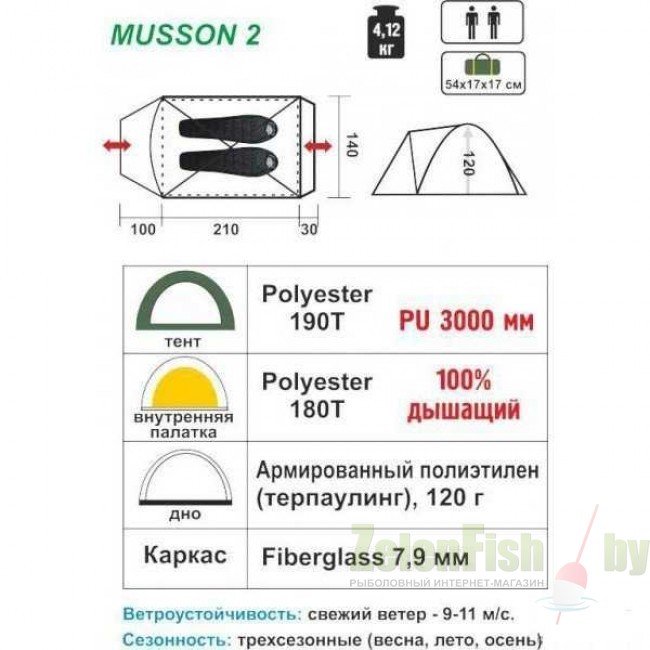 - внутренняя палатка – polyester 190T PU 3000 мм