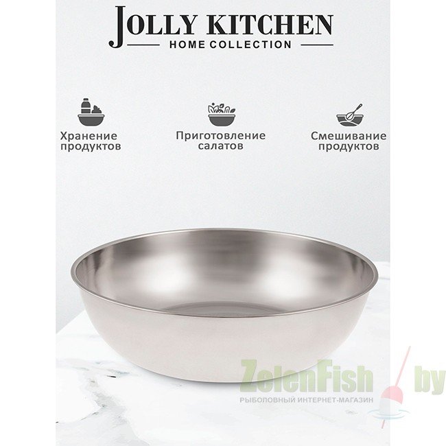 Металлическая миска-таз Jolly Kitchen из нержавеющей стали 31x8,5 см (3,5 л) – универсальная кухонная емкость для приготовления и бытовых нужд. Идеально подходит для замеса теста, маринования, приготовления салатов и хранения продуктов. Благодаря прочной нержавеющей стали не ржавеет, не деформируется и устойчива к царапинам. Гигиенична – не впитывает запахи, легко моется вручную или в посудомоечной машине. Компактные размеры (31 см диаметр, 8,5 см высота) обеспечивают удобное хранение. Зеркальная полировка придает стильный современный вид. Многофункциональна: на кухне используется для теста, маринования, взбивания кремов, в быту – для стирки мелких вещей, хранения инструментов, переноски сыпучих материалов. Практичное решение для дома и дачи.