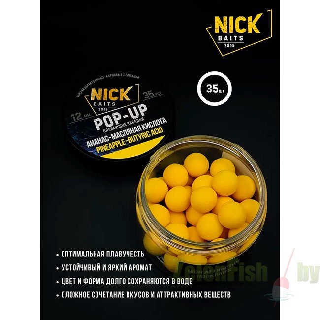 Бойлы Nick Baits POP-UP (Ананас-Масляная кислота), 35шт/12мм