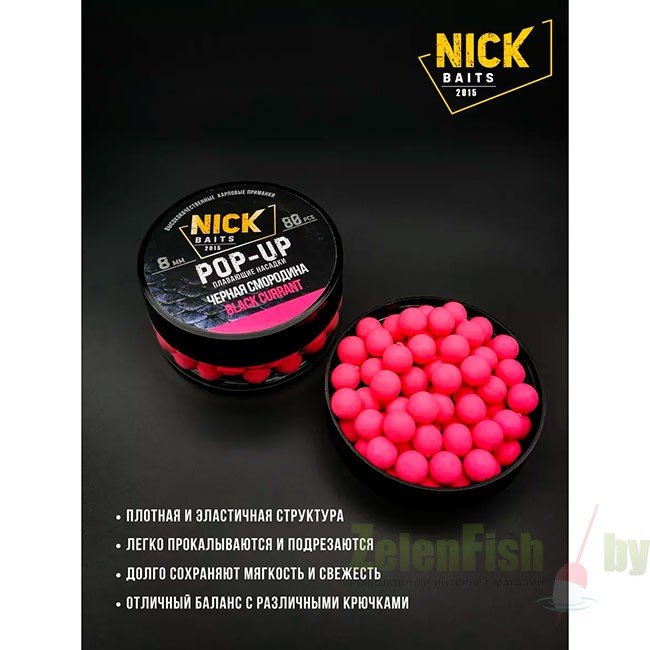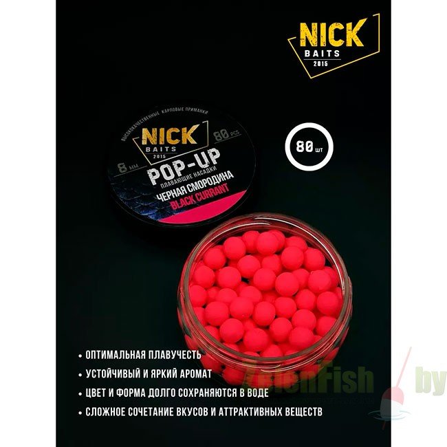 Бойлы Nick Baits POP-UP (Черная смородина), 80шт/8мм