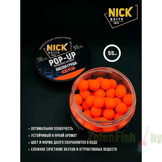 Бойлы Nick Baits POP-UP (Кислая груша), 55шт/10мм