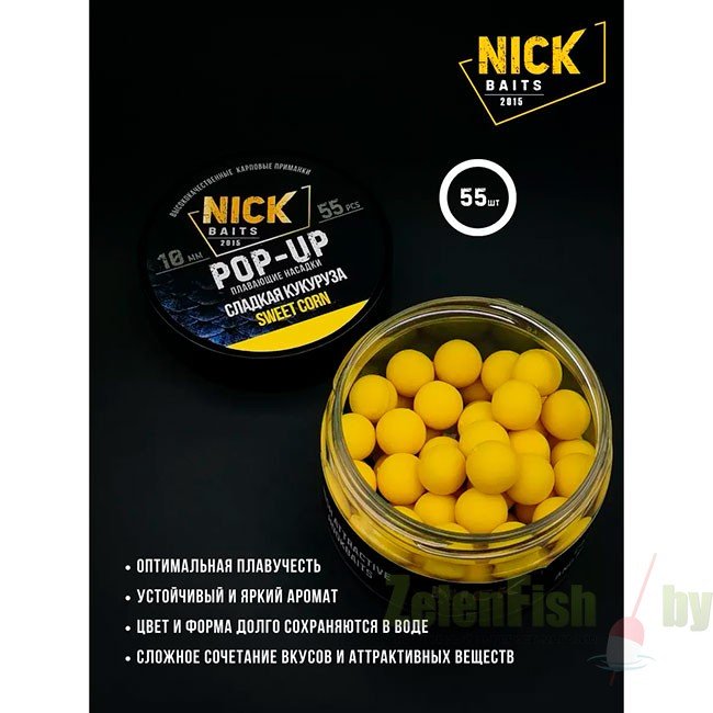 Бойлы Nick Baits POP-UP (Сладкая кукуруза), 55шт/10мм
