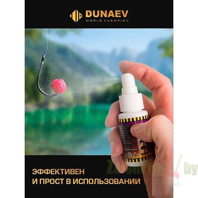Линейка отличается широким выбором ароматики: сюда входят уникальные варианты натуральных моновкусов, добытых с помощью вытяжки из живых продуктов (перловицы, мотыля, опарышей и червей), а также дипы на искусственных ароматизаторах. Длительное хранение никак не сказывается на интенсивности ароматов. Дипы Dunaev не замерзают и не утрачивают свою эффективность даже при температуре -30°С. Отлично сочетаются с любой прикормкой. Выпускаются во флакончиках со спрей-дозатором по 50 мл.