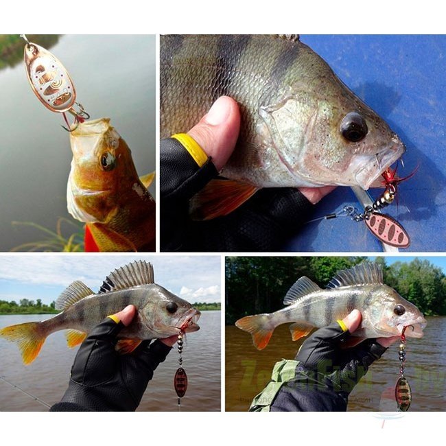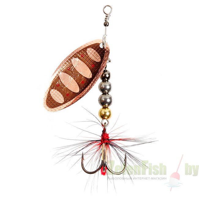 Главный элемент блесен - вращающейся лепесток. Он очень легок, сделан из латуни и обладает хорошими динамическими показателями при вращении в воде, что позволяет делать проводку приманки на минимальной скорости, что очень привлекательно для любой хищной рыбы. Лепесток включается в работу сразу, как только блесна начинает движение. Лепестки окрашены с двух сторон. Под каким бы углом хищная рыба не смотрела на приманку, ее расцветка остается одинаково привлекательной, что повышает интерес к блесне и , в итоге, приводит к результативной атаке.