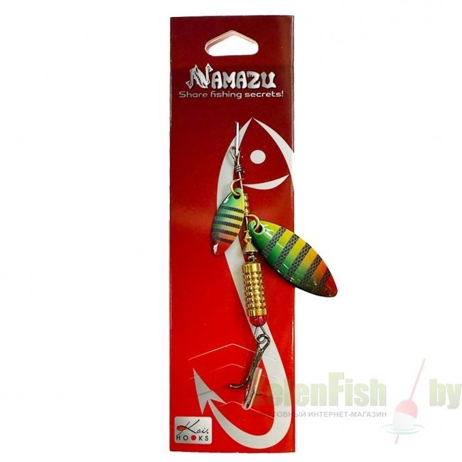 Вертушка-тандем, главный элемент этих блесен – два узких, вытянутых вращающихся лепестка, начинающие свою работу, сразу как блесна начинает движение. Удвоенное количество лепестков обеспечивает дополнительные сигналы, что повышает интерес к блесне даже хитрой рыбы. При этом первый лепесток меньше заднего, поэтому вихри, которые создаются за первым лепестком, не влияют на работу последнего лепестка. Лепесток прикреплен к стержню с помощью хомутика. Оснащена тройным крючком.