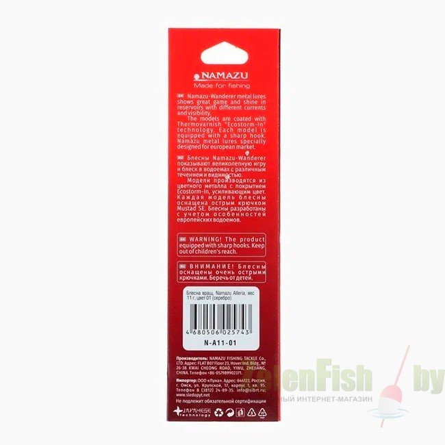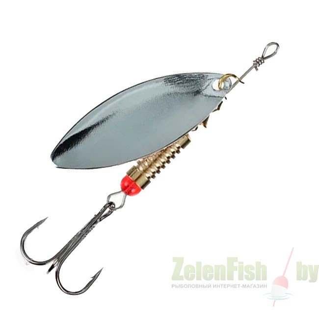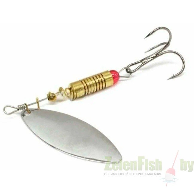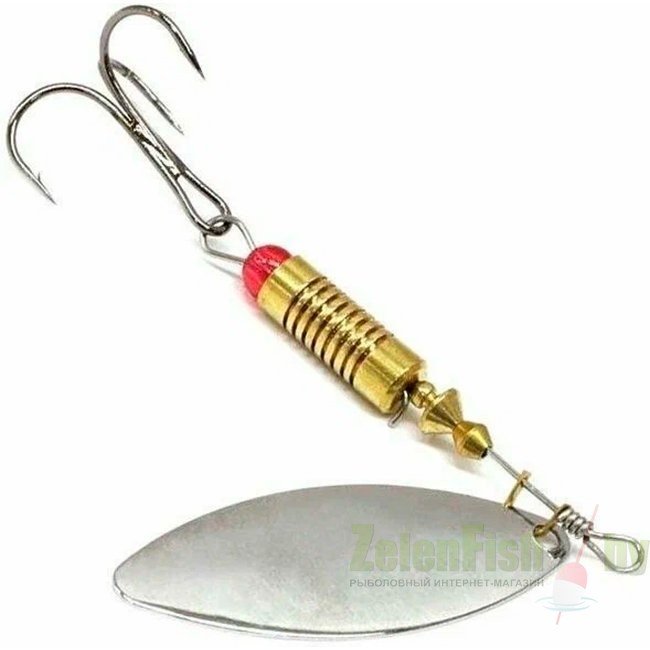 Блесна «Alleria» - это модель с металлическим стержнем, вокруг которого вращается вытянутый, металлический лепесток формы long с углом отклонения от оси 30 градусов. Лепесток создает шумы под водой, что приманивает рыбу. Под лепестком находится сердечник с яркой бусинкой -дополнительной «точкой атаки» для хищной рыбы и тройной крючок. Эти характеристики обеспечивает точность заброса и хороший улов при медленной проводке на течении и придонной ловле. Применяется для ловли практически любого хищника. Вид блесны-вращающаяся. Вид крючка-тройной.