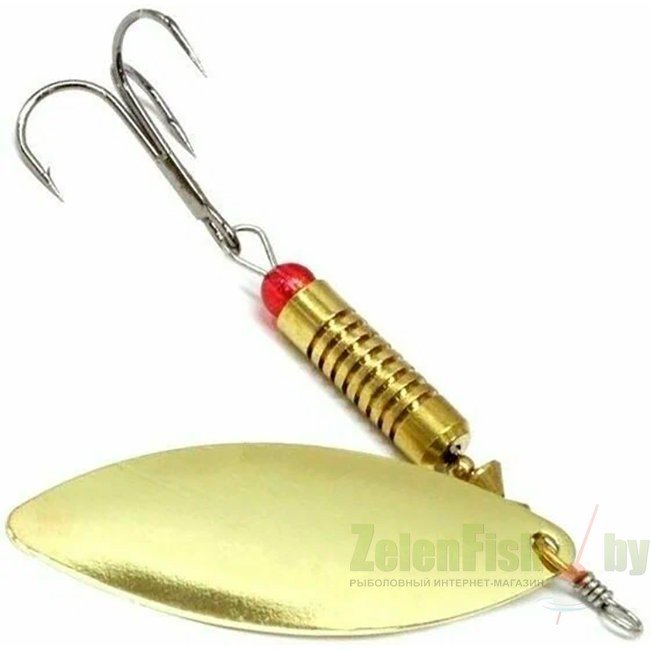 Блесна «Alleria» - это модель с металлическим стержнем, вокруг которого вращается вытянутый, металлический лепесток формы long с углом отклонения от оси 30 градусов. Лепесток создает шумы под водой, что приманивает рыбу. Под лепестком находится сердечник с яркой бусинкой -дополнительной «точкой атаки» для хищной рыбы и тройной крючок. Эти характеристики обеспечивает точность заброса и хороший улов при медленной проводке на течении и придонной ловле. Применяется для ловли практически любого хищника. Вид блесны-вращающаяся. Вид крючка-тройной.