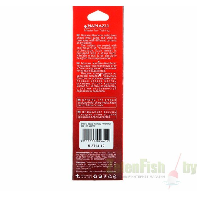 Линейка вертушек Namazu «AmanThul» разработана для облавливания спокойных акваторий и с небольшим течением. Геометрия лепестка обеспечивает вращение без сбоев на низкой скорости проводки. Стабилизирует приманку при этом длинный сердечник. Он разделен поперечным рифлением на 4 шарообразных части, что способствует дополнительным микро возмущениям во время движения в воде. Поддразнивать рыбу будут и колебания мушки, которая маскирует тройник. Блесны Namazu AmanThul имеют хорошие кастинговые характеристики. С такими приманками можно подобраться к осторожным хищникам, типа жереха, охотиться на щуку, окуня, лососевых. Вид блесны-вращающаяся. Вид крючка-тройной.