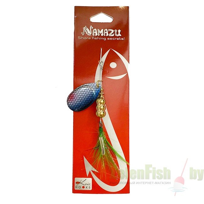 Линейка вертушек Namazu «AmanThul» разработана для облавливания спокойных акваторий и с небольшим течением. Геометрия лепестка обеспечивает вращение без сбоев на низкой скорости проводки. Стабилизирует приманку при этом длинный сердечник. Он разделен поперечным рифлением на 4 шарообразных части, что способствует дополнительным микро возмущениям во время движения в воде. Поддразнивать рыбу будут и колебания мушки, которая маскирует тройник. Блесны Namazu AmanThul имеют хорошие кастинговые характеристики. С такими приманками можно подобраться к осторожным хищникам, типа жереха, охотиться на щуку, окуня, лососевых. Вид блесны-вращающаяся. Вид крючка-тройной.