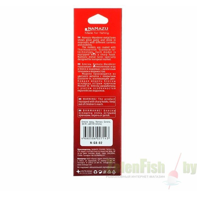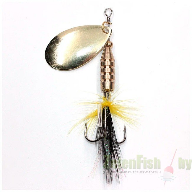 Представленная вертушка из серии Gorana от экспертов Namazu получила вытянутый овальный лепесток с плавным расширением в нижней части. Такая геометрия обеспечивает вращение без сбоев в спокойных акваториях и при наличии слабого течения. Лепесток начинает работать на низкой скорости анимации, потому блесна подойдет для охоты даже за пассивной рыбой. Увесистая приманка имеет вытянутый сердечник, форма которого продумана для улучшения кастинговых показателей. Деталь также имеет глубокое поперечное рифление, которое при движении в воде создает микровибрации. Дополнительно поддразнивать хищника будут колебания перьев, маскирующих тройник. Основная добыча для данного размера вертушки Namazu Gorana - это любопытный окунь и щука. Возможны поклевки крупного голавля.