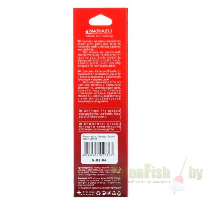 Блесна Namazu Gorana вес 8г, цвет 04