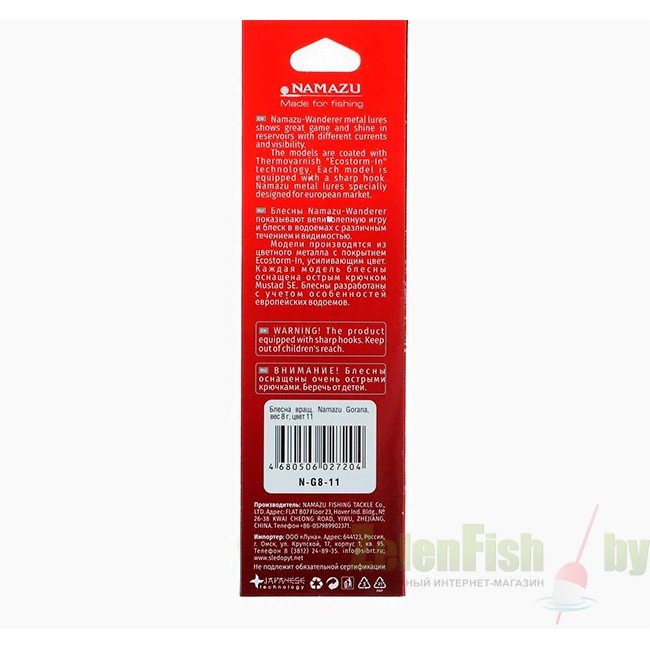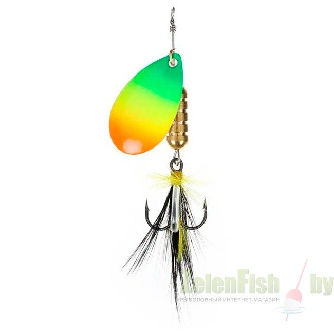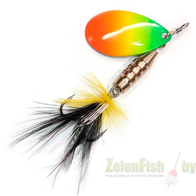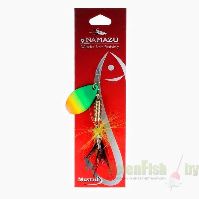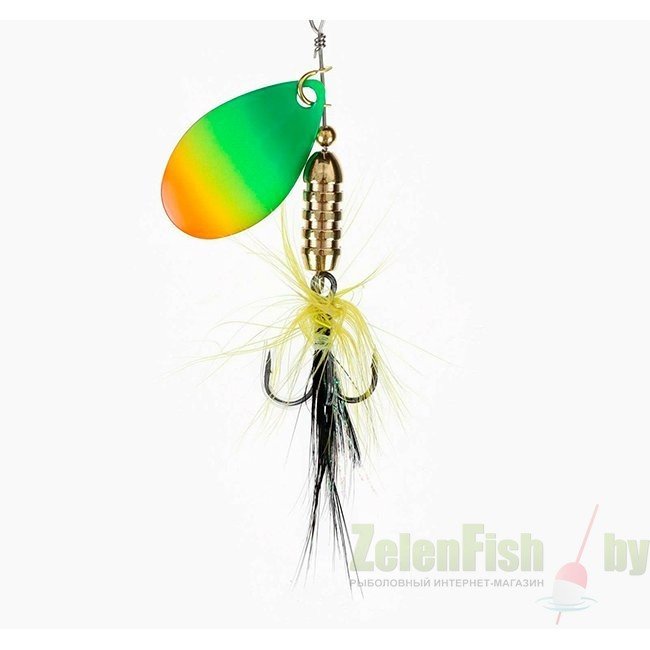 Представленная вертушка из серии Gorana от экспертов Namazu получила вытянутый овальный лепесток с плавным расширением в нижней части. Такая геометрия обеспечивает вращение без сбоев в спокойных акваториях и при наличии слабого течения. Лепесток начинает работать на низкой скорости анимации, потому блесна подойдет для охоты даже за пассивной рыбой. Увесистая приманка имеет вытянутый сердечник, форма которого продумана для улучшения кастинговых показателей. Деталь также имеет глубокое поперечное рифление, которое при движении в воде создает микровибрации. Дополнительно поддразнивать хищника будут колебания перьев, маскирующих тройник. Основная добыча для данного размера вертушки Namazu Gorana - это любопытный окунь и щука. Возможны поклевки крупного голавля.