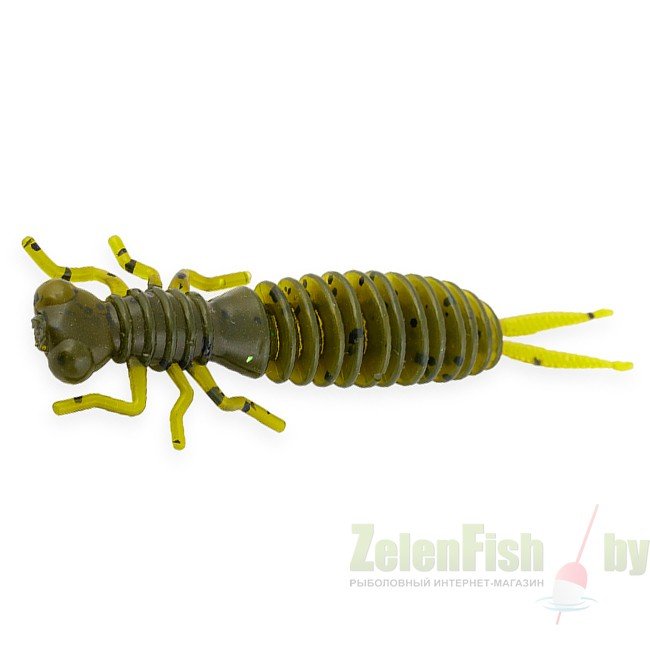 Силиконовый съедобный твистер похож на личинку стрекозы, который предназначен для микроджиговой ловли, игра приманки лучше всего раскрывается при коротких подергиваниях и волочением по дну, периодически выдерживая паузы. Предназначена для ловли окуня, голавля и щуки.