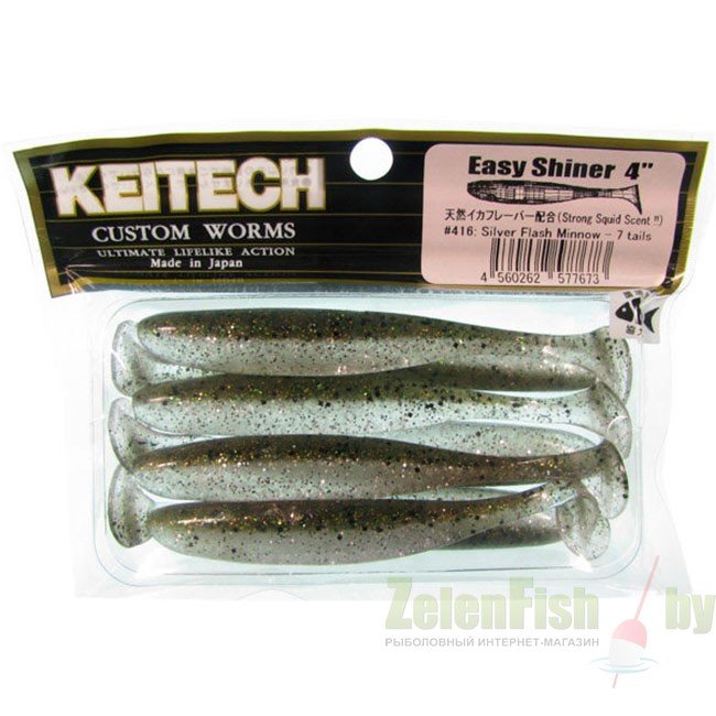 Силикон Keitech Easy Shiner 4"/10см, #416T Silver Flash Minnow (7шт)