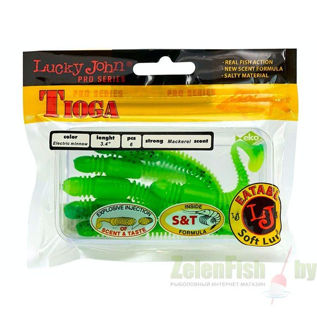 Tioga 50 и 62 мм – лучшие приманки для микроджига, причем монтировать их можно как на джиг-головке, так и на офсетном крючке. Более крупные приманки – Tioga 100 мм оптимальны для классического джига, а Tioga 75 мм успешно применяется в самых различных разнесенных оснастках. Самые мелкие приманки привлекают внимание окуня, бычка-ротана и другой «микроджиговой» рыбы. Модели покрупнее привлекут щуку и судака. Scent&Taste Inside Formula способствует максимально долгому удержанию добычи во рту рыбы, и позволяет выполнить результативную подсечку.
