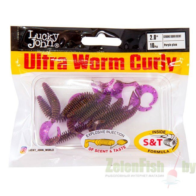 Твистеры Lucky John Pro Series Ultraworm Curly 2"/5см, S13 (10шт)