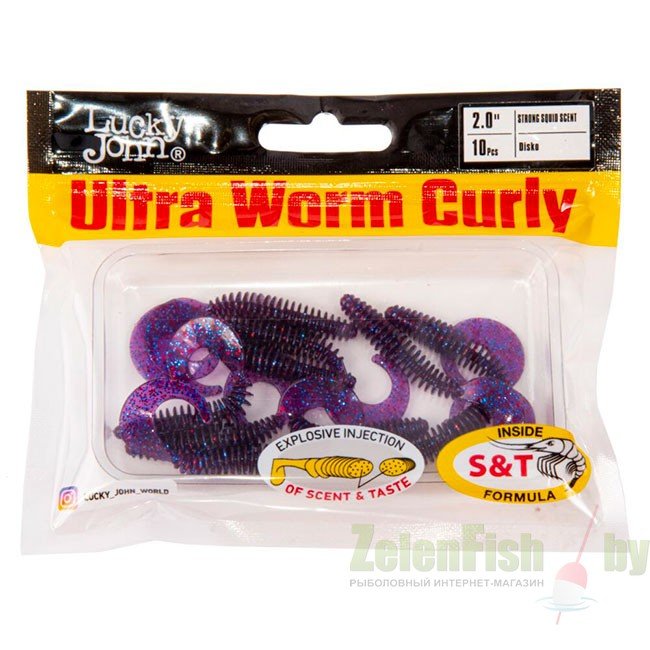 Твистеры Lucky John Pro Series Ultraworm Curly 2"/5см, S63 (10шт)