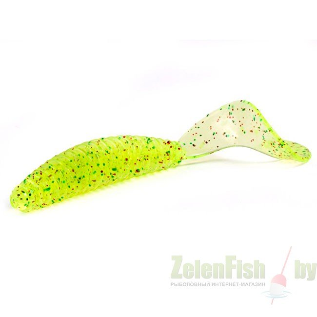 Представляет собой ребристый твистер. Изогнутый хвост довольно тонкий, что позволяет ему активно колебаться во время проводки. Движения хвоста создают красивый визуальный эффект, который хорошо воздействует на хищную рыбу.