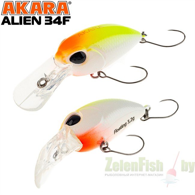 Воблер Akara Alien изначально позиционируется как форелевый воблер для ловли в стоячей воде. Но он отлично подойдёт для ловли некрупной щуки на заросших мелководьях, а также для ловли окуня, голавля и язя на реках. Этот воблер очень быстро всплывает, при этом незначительно покачиваясь. Шумовая камера внутри воблера создаёт дополнительные вибрации и звуки, привлекая хищников и повышая вероятность поклёвки. Игра этой приманки очень резкая активная и агрессивная. Для воблера отлично подойдёт равномерная проводка, а также проводка stop-and-go.