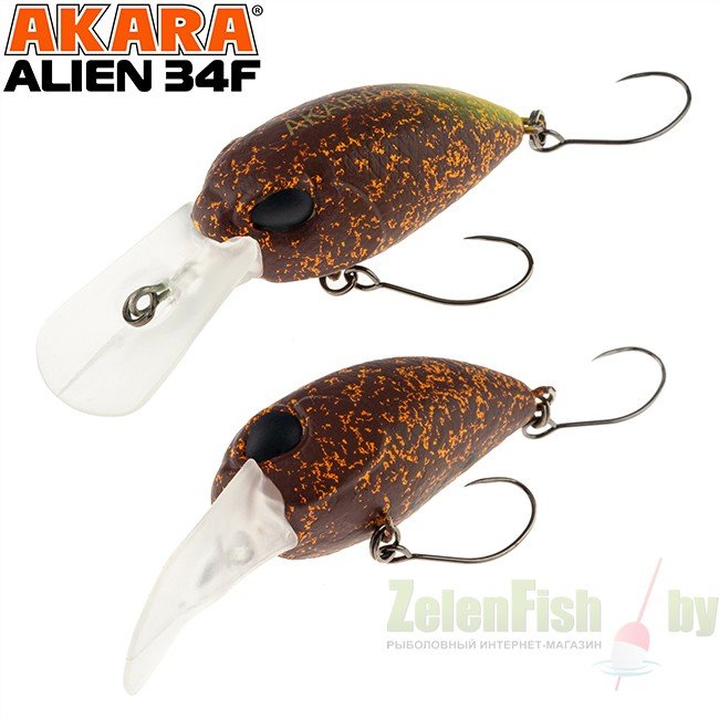 Воблер Akara Alien изначально позиционируется как форелевый воблер для ловли в стоячей воде. Но он отлично подойдёт для ловли некрупной щуки на заросших мелководьях, а также для ловли окуня, голавля и язя на реках. Этот воблер очень быстро всплывает, при этом незначительно покачиваясь. Шумовая камера внутри воблера создаёт дополнительные вибрации и звуки, привлекая хищников и повышая вероятность поклёвки. Игра этой приманки очень резкая активная и агрессивная. Для воблера отлично подойдёт равномерная проводка, а также проводка stop-and-go.