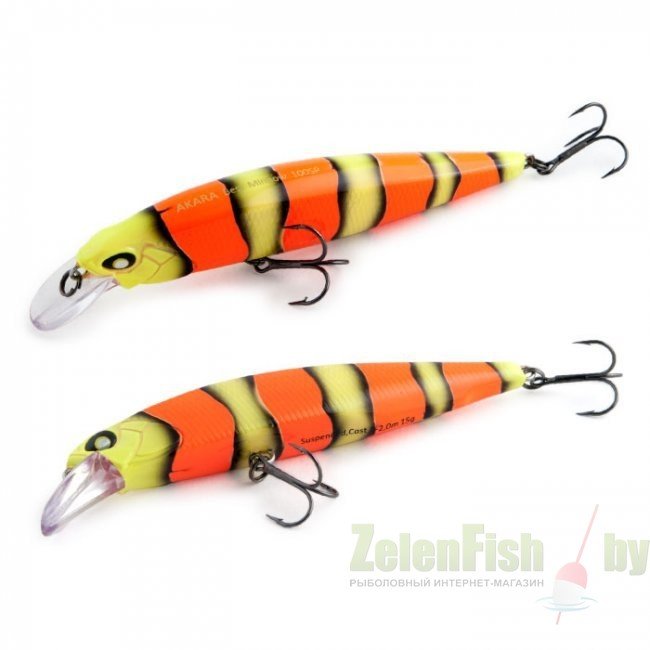 Классический твичинговый воблер-суспендер класса минноу. При рывковой проводке имеет размашистую стабильную игру, во время остановок зависает в толще воды и провоцирует хищника на поклевку. Так же приманка обладает собственной игрой. При равномерной проводке совершает небольшие частые колебания, что позволяет его использовать и для троллинга на небольших глубинах. Имеет систему дальнего заброса и шумовые камеры. Выпускается в двух размерах: 100 и 110 мм. Тело в оранжево-желтую полоску (A70). Акустический. Суспендер. Заглубление при кастинге 0 до 2,0 м.