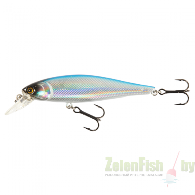 Воблер класса Shad, обладающий небольшим заглублением при проводке. Имеет лопатку, расположенную под углом 45 градусов. Отличается мелкой игрой и небольшой амплитудой движения. Хорошо работает при любой проводке, от равномерной до активного твичинга. Относительно шумный, подойдет для ловли на большинстве водоемов. Идеальный вариант для щуки, судака и окуня. Цвет A67 (тело серебристое, спинка синяя, черная голова). Длина 8 см при весе 10 грамм. Заглубление до 1 метра.