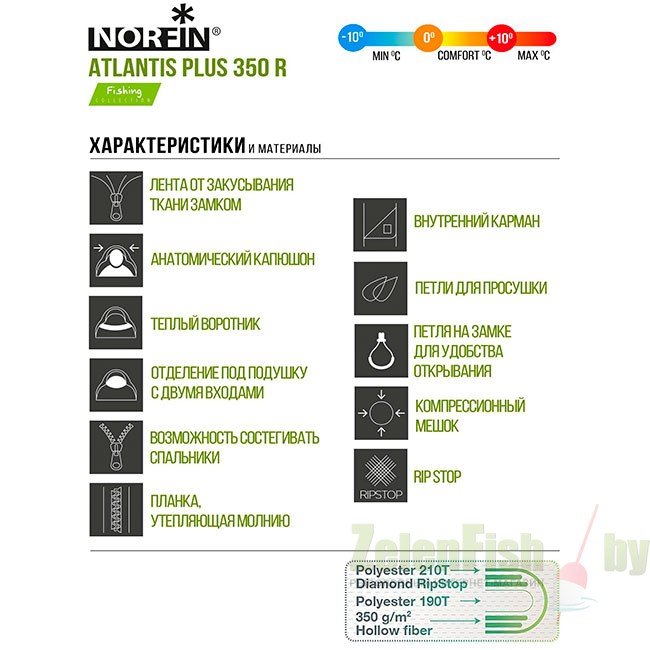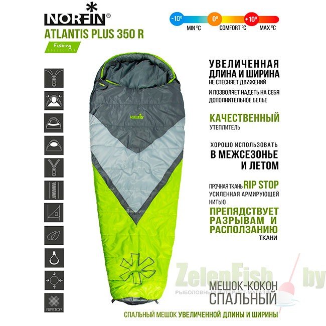 Спальный мешок-кокон Norfin Atlantis Plus 350 R 230х90см, -10С/+10С