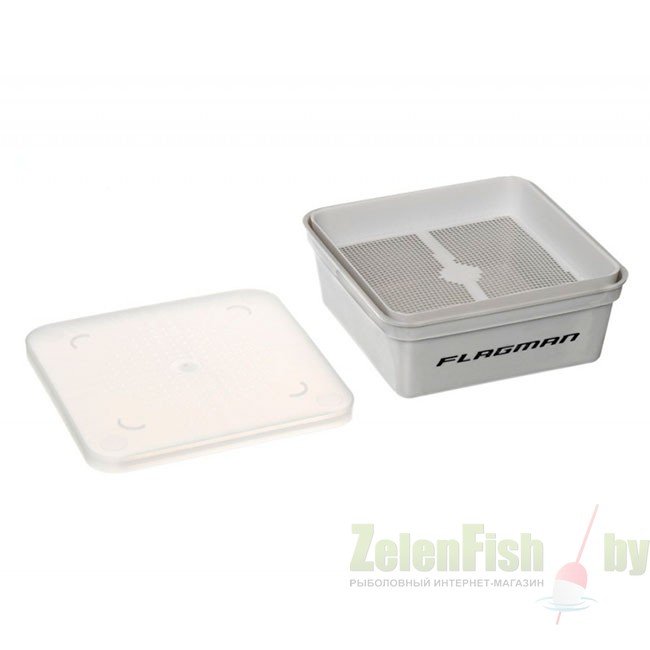 Коробка для наживки F-fishing с ситом и крышкой, 13.5х13.5х5.5см