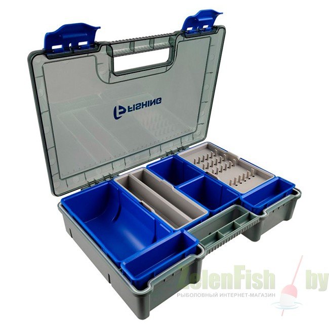 Универсальный пластиковый кейс, который создан специально для хранения и транспортировки рыболовных принадлежностей, фурнитуры и аксессуаров, используемых в фидерной и матчевой ловле. Бокс изготовлен из прочного и износостойкого пластика. Крышка кейса выполнена из прозрачного материала, который защищает содержимое от воздействия ультрафиолетовых лучей. По периметру крышки расположен резиновый уплотнитель, который предотвращает попадание влаги, грязи и пыли внутрь бокса. Благодаря надёжным защёлкам, коробка не откроется случайно во время транспортировки снастей. Удобная ручка обеспечивает комфортную переноску. Бокс имеет модульную конструкцию, которая позволяет оптимально использовать внутреннее пространство. Вы можете комбинировать лотки-вставки в зависимости от их наполнения и упорядочить снаряжение в зависимости от условий рыбалки.
