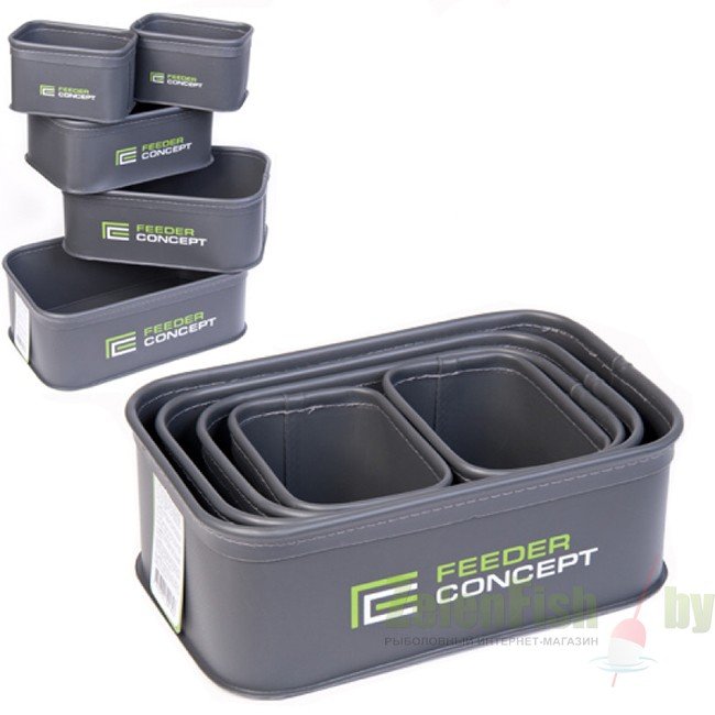 Водонепроницаемый набор емкостей для хранения насадки, прикормки и животных компонентов. Состоит из пяти коробок, различных размеров. Изготовлены из легкого EVA материала. Быстро моются, не требуют просушивания. Позволяют компактно и удобно организовать рыболовное пространство.