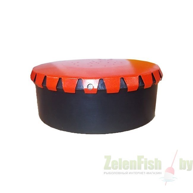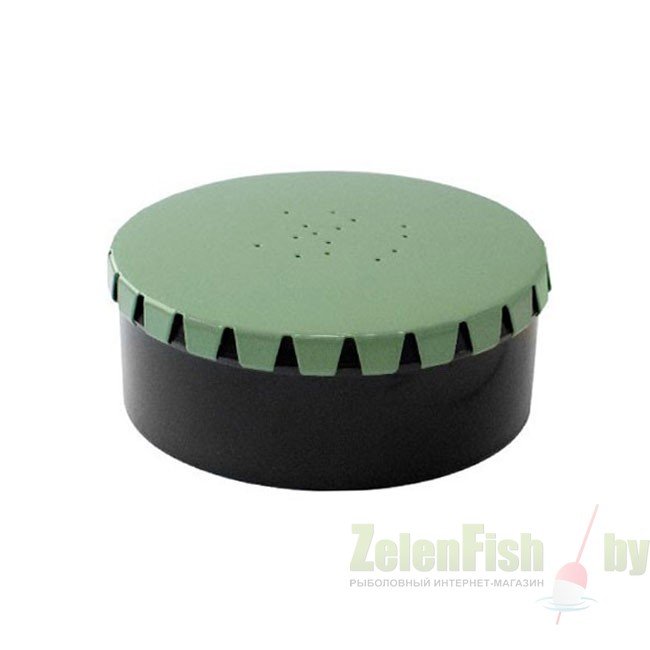 Удобная и вместительная коробка для рыболовной наживки. Материал корпуса пластик, крышка металлическая. Цвет крышки зависит от поставки (подробнее узнавайте по телефону).