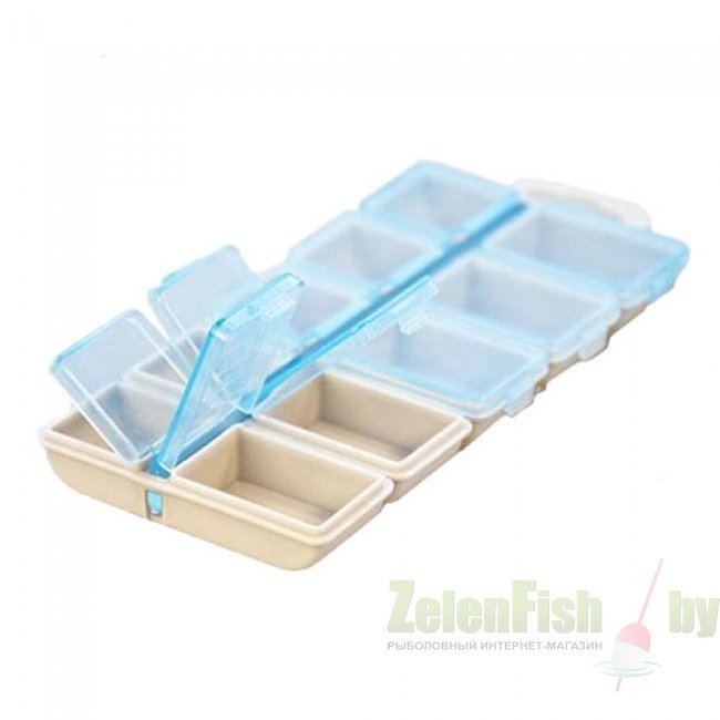 Удобная небольшая коробка для хранения мормышек, мушек и крючков. Каждое отделение защищено прозрачной крышкой.